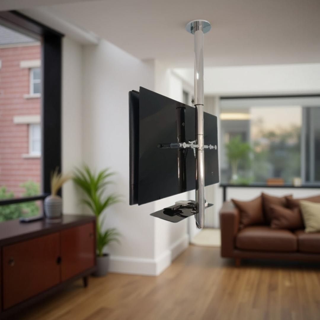 O Suporte para TV de Teto em Aço Inox com Prateleira Kasa Mais é a solução ideal para quem busca design sofisticado, organização e funcionalidade em um único produto.